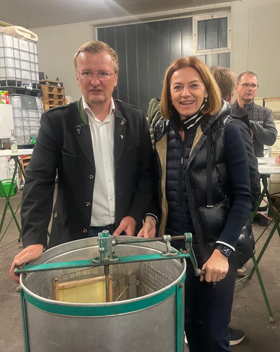 Am Abend fand schließlich ein Stammtisch zum Thema „Regionale Versorgungssicherheit“ in der Imkerei von Johannes Wieser in Laufnitzdorf statt. Nach einer Führung durch den Betrieb des Gastgebers ist Landesrätin Schmiedtbauer im Rahmen eines Impulsreferates auf das breite Tätigkeitsfeld ihres Ressorts eingegangen und hat die hohe Bedeutung der Eigenversorgung hervorgehoben. Anschließend gab es eine rege Diskussion mit den rund 30 anwesenden Teilnehmerinnen und Teilnehmern aus den verschiedensten Bereichen der Landwirtschaft.